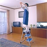 屋内向けのデザインで、ステップ幅が広く、安定感のある踏み台です。使用時意外はコンパクトに折りたたんで収納できます。最上段に上がった時に、すねが当たりにくい構造になっています。安全なストッパーが付いています。 商品サイズ(cm):幅約49×奥行約64.5×高さ約115.5 耐荷重:全体約100kg 折りたたみ時(約):49×10×125cm 主要材質:本体:スチール(エポキシ塗装)、踏み台部分:ポリエチレン・エラストマー樹脂 踏み台最高段の高さ:約72.5